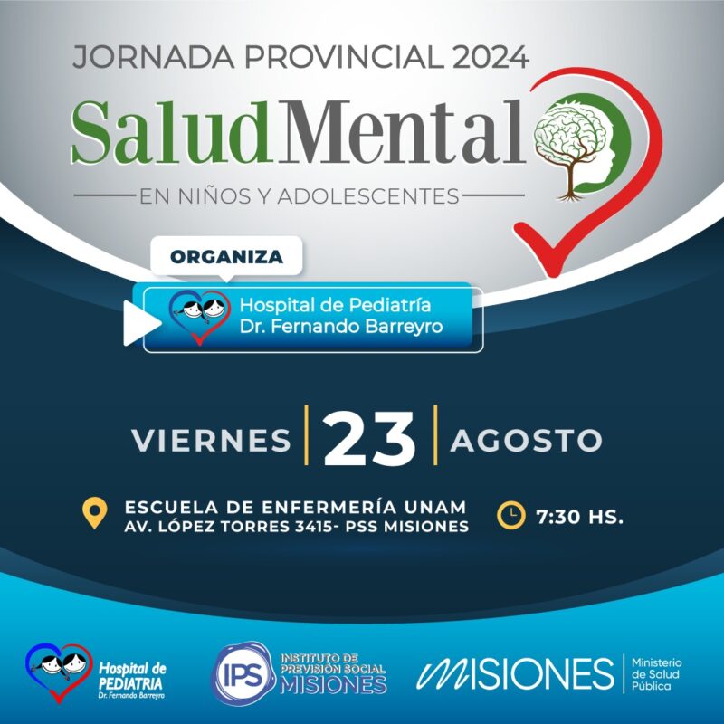 Urgencias psiquiátricas, contención, adicciones, salud mental serán algunos de los temas que se desarrollarán en la primera Jornada Provincial de Salud Mental Niños y Adolescentes, que organiza en Hospital de Pediatría Dr. Fernando Barreyro, para el próximo 23 de agosto.