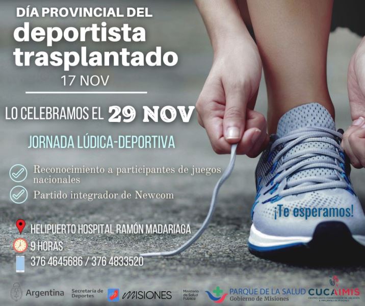 El objetivo es promover hábitos en la práctica de actividades físicas para beneficio de la salud, difundir el programa de deportes y realizar un reconocimiento a los deportistas trasplantados, en diálisis y en lista de espera han participado de las diferentes competencias nacionales e internacionales representando a Misiones durante este año.