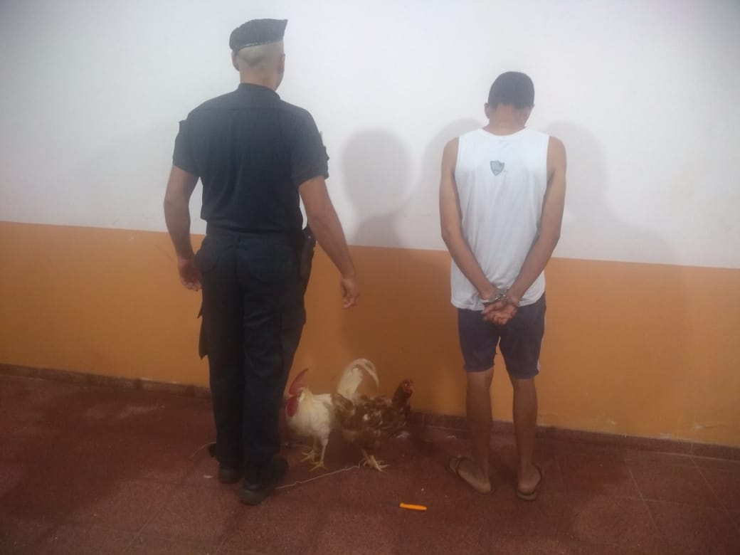 Ante esta situación, se procedió a la detención del acusado en averiguación de sus antecedentes. Asimismo, se realizó el secuestro de las gallinas y del cuchillo mencionado. El detenido fue alojado en el sector celda de la Comisaría de Puerto Piray, luego de un examen médico.