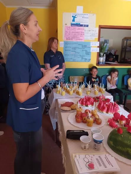 El martes 11 de noviembre, en el CAPS La Corita, se realizó una charla informativa sobre diabetes, prevención y tratamiento, a cargo de la Lic. en Nutrición Yvette Dubois. El encuentro estuvo dirigido a la comunidad, con el objetivo de fortalecer el conocimiento sobre la enfermedad, sus factores de riesgo y las estrategias para adoptar hábitos saludables. Continuando con estas acciones, el miércoles 13 de noviembre, en el Hospital Nivel I de Concepción de la Sierra, se llevó adelante una Jornada de concientización sobre diabetes, encabezada por la Dra. Maira Adaro y la Lic. en Nutrición Yvette Dubois. Durante la actividad se distribuyeron folletos informativos y se compartió un refrigerio saludable, estos eran muffins de avena aptos para personas con diabetes. En ambos efectores participó público en general, pacientes diabéticos y personal de salud, contando además con el acompañamiento de la directora del nosocomio, Farm. Laura Dubois, y del acompañamiento del Nodo de Calidad.