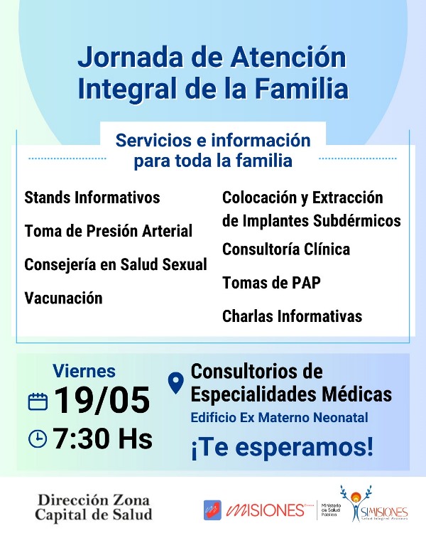 Mañana se conmemora el Día del Médico de Familia, motivo por el cual, en Consultorios Externos de Especialidades Médicas de Zona Capital, se realizará una jornada de atención integral familiar