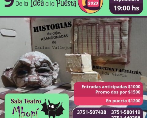 La 9na edición “De la Idea a la Puesta” con «Historias De Cajas Abandonadas » se desarrollará en Posadas del 1 al 3 de septiembre con sedes en Aristóbulo del Valle, Puerto Iguazú y Eldorado, el 4 de septiembre. Sinopsis: Ismael, rescata