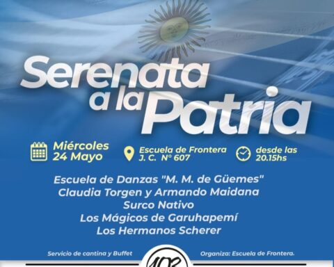Montecarlo. Como ya es tradicional a lo largo de los últimos años, se realizará este miércoles 24 de mayo, la gran Peña Folklórica denominado “Serenata a la patria” para conmemorar el primer gobierno patrio. Organizado por la comunidad educativa de la Escuela
