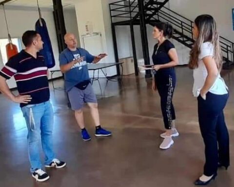 La Directora de Deportes y Recreación municipal, Prof. Lorena Merochenich, visitó el Dispositivo Territorial Comunitario de Eldorado. Allí se llevó adelante una reunión de trabajo junto a los coordinadores de este espacio, Rosa Maria López y Marcelo Duarte, y al Prof. Sergio