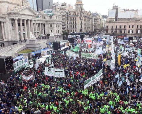 Miles de trabajadores festejaron la media sanción en Diputados, tras una extensa jornada frente al Congreso, en la que la CGT y las dos CTA, entre otros espacios del movimiento obrero organizado, realizaron una masiva movilización para acompañar el debate del proyecto