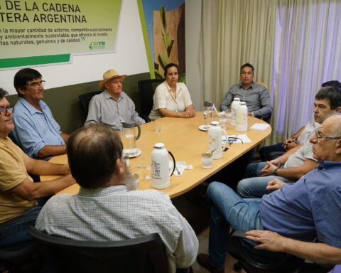 El presidente del Directorio del INYM, Rodrigo Correa, y los directores por el sector de la producción, Jorge Haddad, María Soledad Fracalossi, Roberto Ferreyra y Ramón Rodríguez, recibieron este martes a un grupo de dirigentes de asociaciones de productores, con los cuales