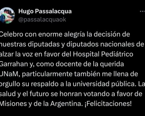 El gobernador de Misiones, Hugo Passalacqua, celebró la decisión de la Cámara de Diputados de la Nación de rechazar los vetos del Gobierno nacional al financiamiento de las universidades públicas y del Hospital Pediátrico Garrahan, y destacó especialmente el acompañamiento de las
