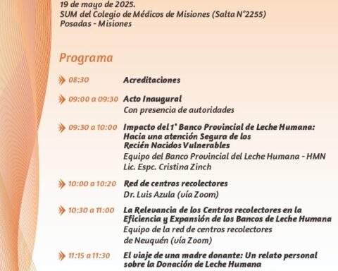 El próximo lunes 19 de mayo, se llevará a cabo la Jornada Provincial por el Día Mundial de la Donación de Leche Humana, organizada y coordinada por el equipo del Banco de Leche Humana del Hospital Materno Neonatal. El encuentro será presencial