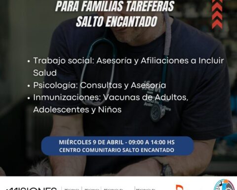 El miércoles 9 de abril se realizará un operativo de Salud para Familias Tareferas de Salto Encantado en el Centro Comunitario de 9 a 14 horas. La actividad que es impulsada por el Gobierno de Misiones contará con la colaboración de los