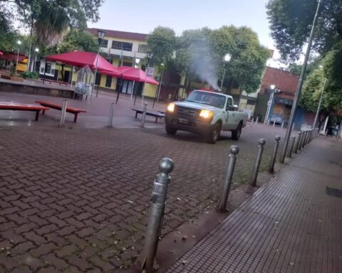 La Secretaría de Ambiente de la Municipalidad de Eldorado en el marco de la campaña de prevención contra el Dengue realizó este domingo 24 de marzo trabajos de rociado espacial con maquina ULV en el barrio Andrés Guacurari y Microcentro de la