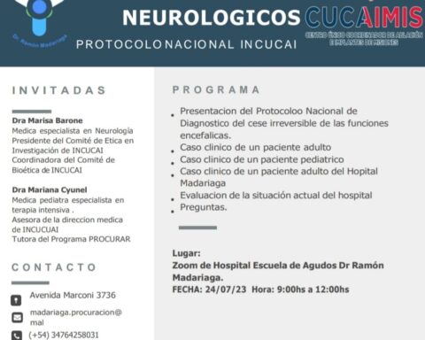El lunes 24 de julio, el Hospital Escuela -junto a INCUCAI y CUCAIMIS- brindará una capacitación sobre Certificación de Muerte bajo Criterios Neurológicos. El tema central será “Diagnóstico de Muerte Encefálica” y está dirigida a profesionales de los servicios de Terapia y
