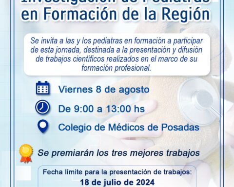El 8 de agosto se realizará la Primera Jornada de Investigación de Pediatras en Formación de la Región, en el Colegio de Médicos de Posadas, de 9 a 13 horas, organizada por la Sociedad Argentina de Pediatría y el Hospital de Pediatría