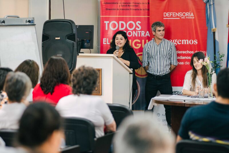 En el conversatorio estuvieron presentes el Subsecretario de Salud, Héctor Proeza, la Directora de Gerontología, Silvia Tarón, la Coordinadora del Área de Adultos Mayores de la Defensoría del Pueblo, Patricia Figueredo y la Defensora del Pueblo de Posadas, Valeria Feiore.
