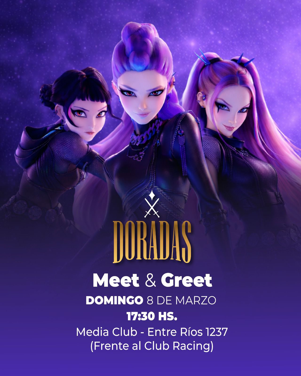 La esperada interacción con el público tendrá lugar el próximo domingo 8 de marzo a las 17:30 hs en Media Club. El universo de las Guerreras K-Pop, fenómeno global que moviliza a millones de seguidores, aterriza en la ciudad con una propuesta local de alto nivel. Doradas In Concert inicia su camino hacia el gran estreno con una experiencia íntima diseñada para que el público infantil y familiar pueda conocer de cerca a sus personajes favoritos.
