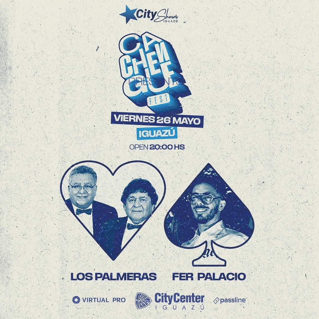 Se terminó la espera la fiesta más divertida del país desembarca en Misiones. En este mes de mayo el “Cachengue Tour” realizará una parada en Puerto Iguazú. La cita será el viernes 26 de mayo en las instalaciones del City Center Iguazú. Para esta ocasión se estarán presentando dos de los máximos exponentes del cachengue nacional: Los Palmeras y Fer Palacio.