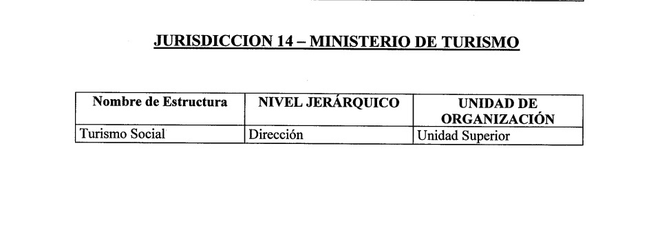En lo que respecta al Ministerio de Turismo particularmente, la única área eliminada fue la Dirección de Turismo Social, cargo al que Acosta fue nombrada por la resolución N° 219 el 16 de febrero de 2024.