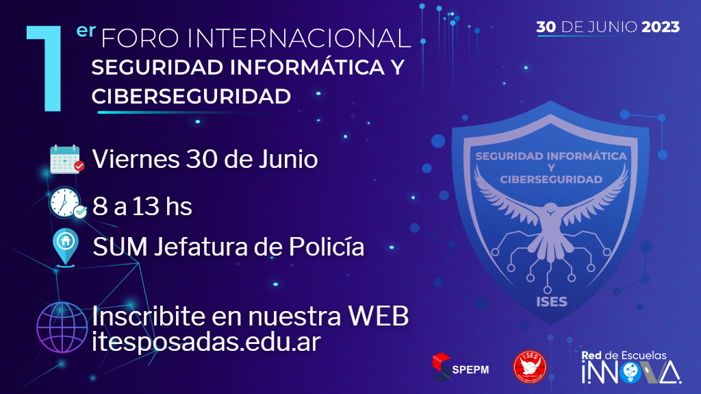 En un trabajo en conjunto con el SPEPM y la Red de Escuelas Innova, el ISES promueve su primer “Foro Internacional de Seguridad Informática y Ciberseguridad” con el aval del Ministerio de Gobierno de la provincia de Misiones. Un evento que cuenta con la colaboración de varias instituciones del medio y que contará con disertantes de Argentina y Paraguay.