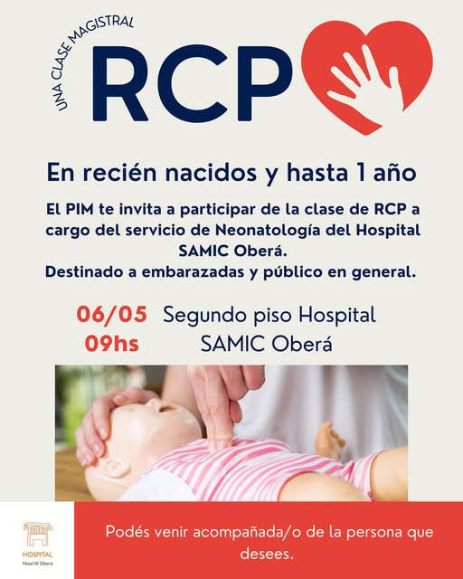 Es así que mañana, a partir de las 9 horas, el servicio de neonatología del hospital estará ofreciendo una charla sobre RCP en recién nacidos y niños de hasta un año.Profesionales de la salud brindarán a los padres y acompañantes las técnicas de cómo se realiza RCP en bebés y niños lo que lleva a un correcto actuar ante una situación de emergencia.