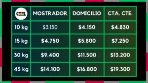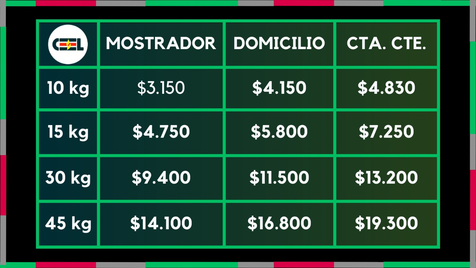 Cuadro de valores de cargas de Gas en la CEEL