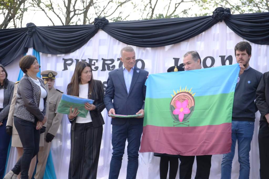 Puerto Leoni. El vicegobernador de la tierra colorada, Carlos Arce presidió el acto por los 64 años de esta localidad donde compartió junto a la comunidad de emotivos homenajes y del desfile cívico militar.