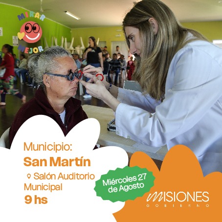 San Martín. Este miércoles 27 de agosto, desde las 9 horas en el Salón Auditorio Municipal de San Martín, se realizará un nuevo operativo del programa provincial “Mirar Mejor”, que garantiza asistencia oftalmológica gratuita e integral para la comunidad.