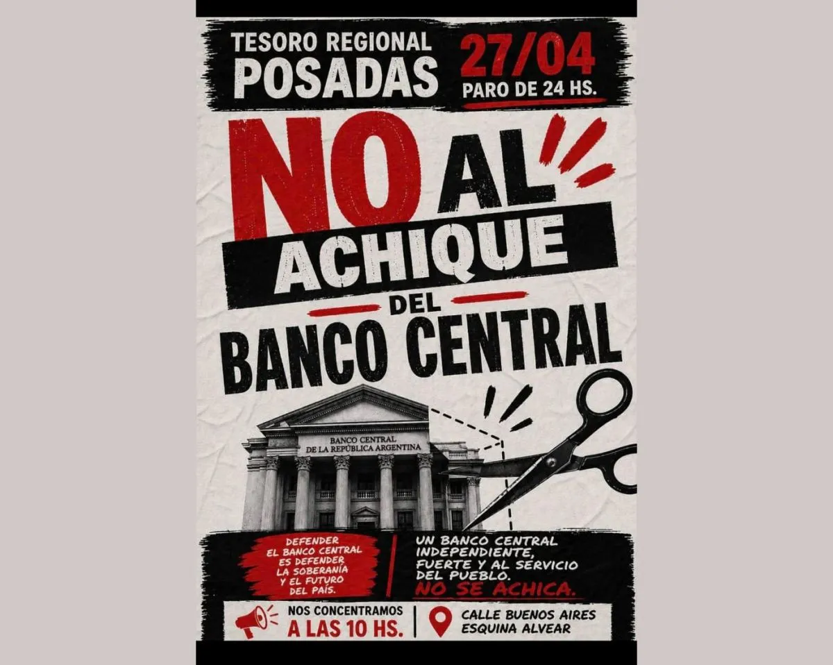 Tal como fue anticipado días atrás, la Asociación Bancaria ratificó un paro bancario nacional de 24 horas para este lunes 27 de abril, una medida de fuerza que afectará exclusivamente a los tesoros regionales del Banco Central de la República Argentina (BCRA) en todo el país. En Posadas, la concentración será a partir de las 10, en la intersección de las calles Buenos Aires y Alvear en el microcentro.