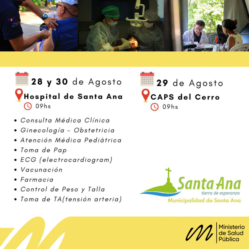 Con una amplia variedad de servicios para la comunidad, se estará llevando a cabo hoy, mañana y el viernes a partir de las 9 horas, en el Hospital de Santa Ana y el CAPS del Cerro jornadas integrales de salud.