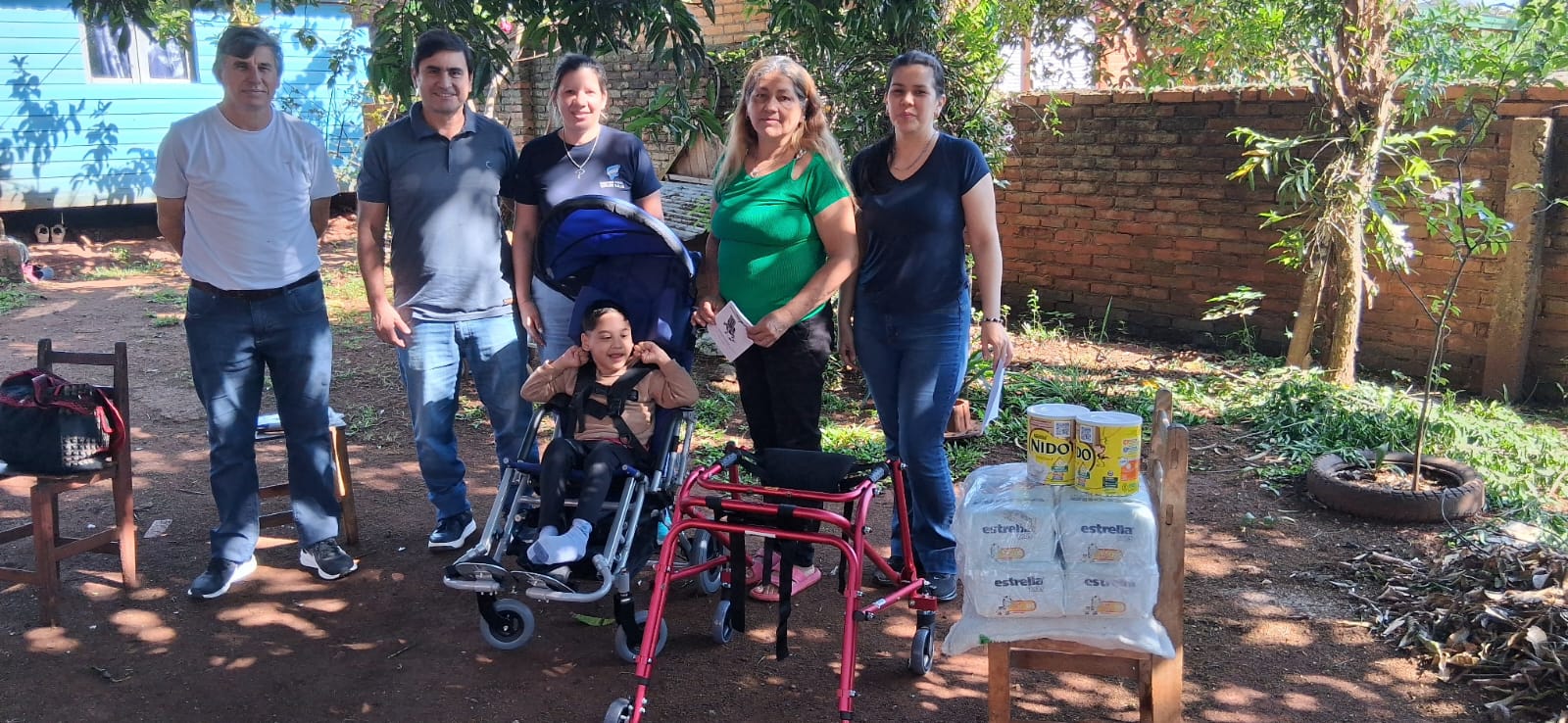 En Los Helechos se entregó una cama ortopédica, colchón antiescara, silla de ruedas, pañales y medicación a Sara Unizony, quien sufrió un ACV. En Puerto Piray Kiara Olivera, tiene encefalopatía crónica no evolutiva y se hizo entrega de un chango postural.