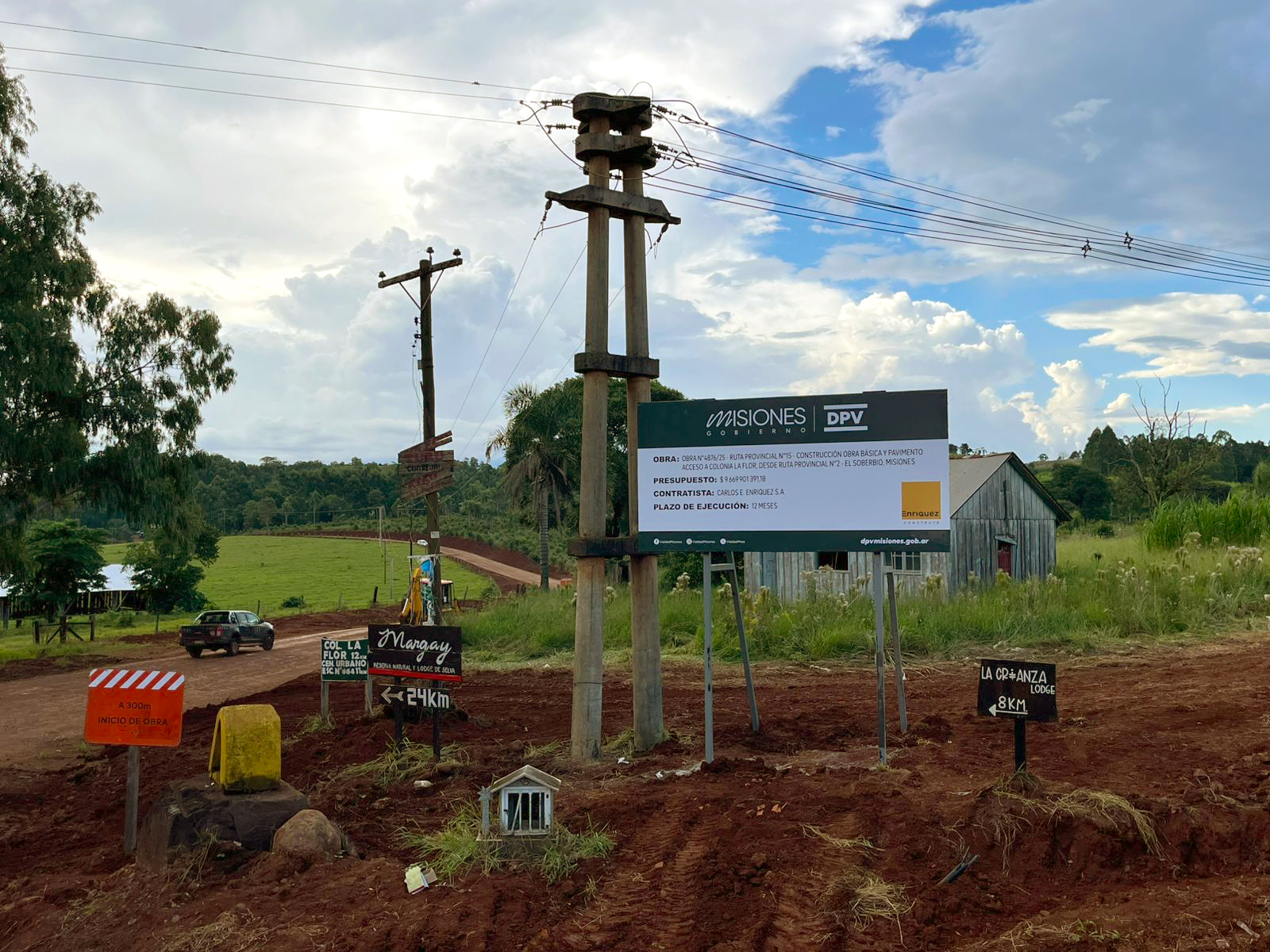 El mes de abril marca el inicio de la obra correspondiente a la construcción de la Ruta Provincial N° 15 en el tramo que conecta la Ruta Provincial N° 2 con Colonia La Flor, en la localidad de El Soberbio, Misiones. El proyecto contempla 16,6 kilómetros de movimiento de suelo, desagües transversales y laterales, pavimento, elementos de contención y señalización.