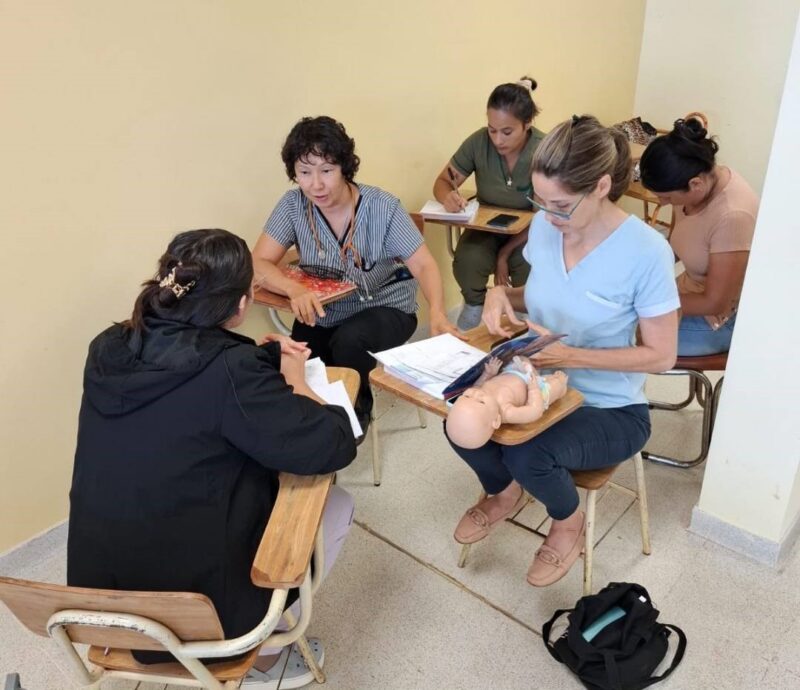 “En una sola jornada se distribuyeron la teoría y la práctica. La primera parte se basó en el marco teórico de la «Actualización en Reanimación Cardiopulmonar Neonatal» de la Sociedad Argentina de Pediatría. En la segunda parte, se realizó la simulación de denominada “corrida de casos” y se finalizó con una evaluación para medir los conocimientos adquiridos.