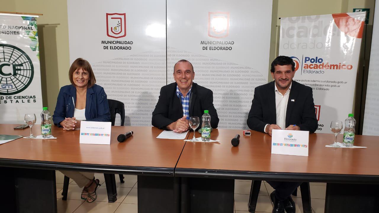Participaron del Acto El intendente de la ciudad de Eldorado Dr. Rodrigo Durán, el decano de la Facultad de Ciencias Forestales Ing. Héctor Fabián Romero, el presidente de la Agencia para el Desarrollo Económico de Eldorado Ing. Carolina Enebelo.