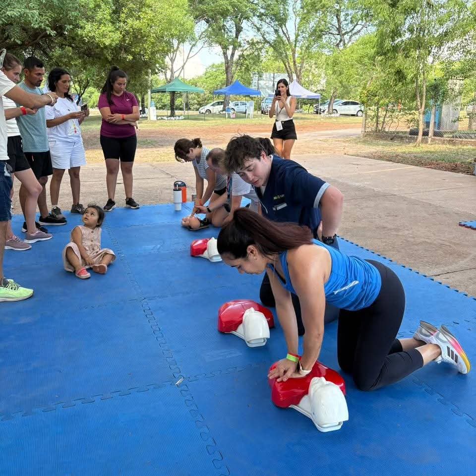 Durante la actividad, el equipo técnico llevó adelante prácticas guiadas en primeros auxilios y maniobras de reanimación cardiopulmonar brindando a los participantes conocimientos esenciales para actuar ante emergencias y fortalecer la capacidad de respuesta inmediata en la comunidad.