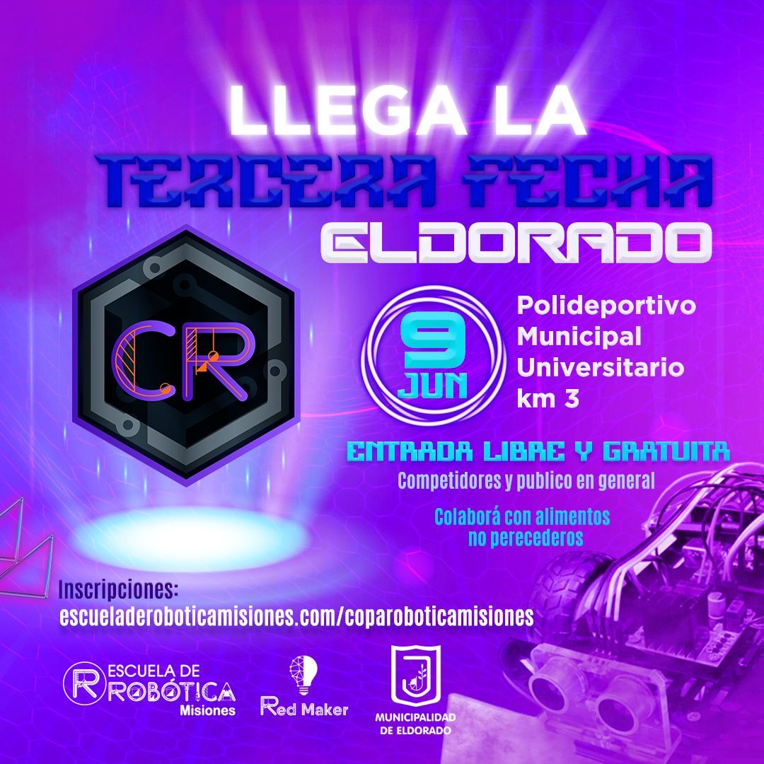 La Municipalidad de Eldorado a través de la Escuela de Robótica municipal este 9 de junio a partir de las 10 horas en el Polideportivo Municipal Universitario del km 3 llevará a cabo la Copa Robótica Misiones . Un evento destacado en el campo de la robótica e inteligencia artificial, donde los participantes mostrarán sus habilidades y conocimientos técnicos en un ambiente de competencia amigable y de aprendizaje.