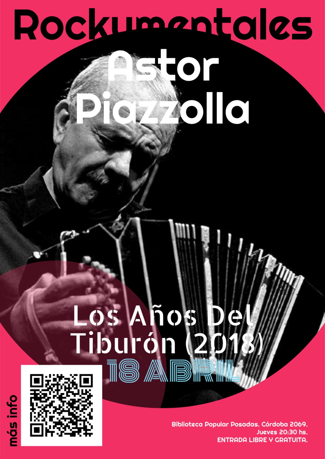 Durante todos los jueves del mes de abril se realiza el ciclo de documentales en la Biblioteca Popular Posadas (Córdoba 2018). Luego de dos encuentros, a sala llena, para este jueves se proyectará: “Los años del tiburón” documental realizado por el director Daniel Rosenfeld, con la ayuda de Daniel Piazzolla -hijo de Astor-.