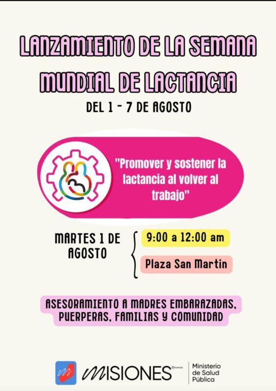 Bajo el lema “promover y sostener la lactancia materna al volver al trabajo” se desarrollará desde mañana y hasta el 7 de agosto, la semana Mundial y Provincial de la lactancia materna en Misiones.