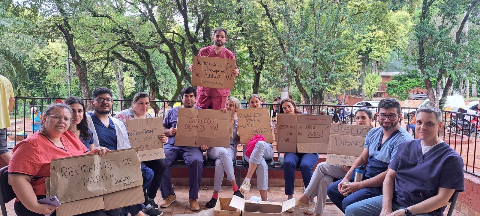 Residentes de salud la provincia, como médicos, residentes y psicólogos, iniciaron a las 10h de ayer jueves una nueva medida de fuerza por tiempo indeterminado y se ubicaron en las afueras del Hospital Ramón Madariaga de Posadas.