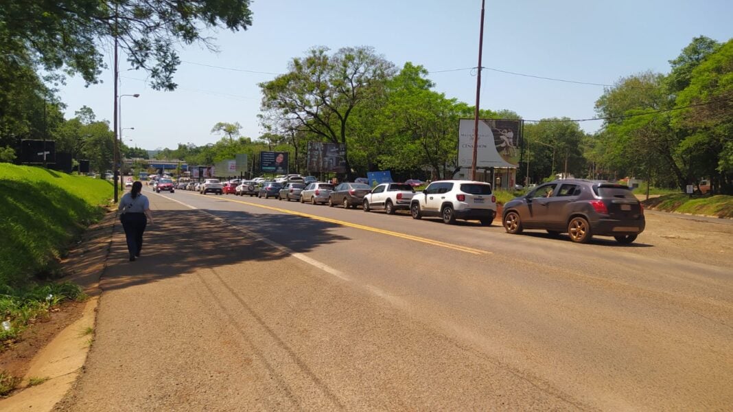 El combustible se ubica entre los artículos más demandados, lo que ha generado escasez en Puerto Iguazú. Las interminables filas de paraguayos, brasileños y argentinos que buscan cargar nafta experimentan retrasos de hasta dos o tres horas, a medida que se suman a las colas.