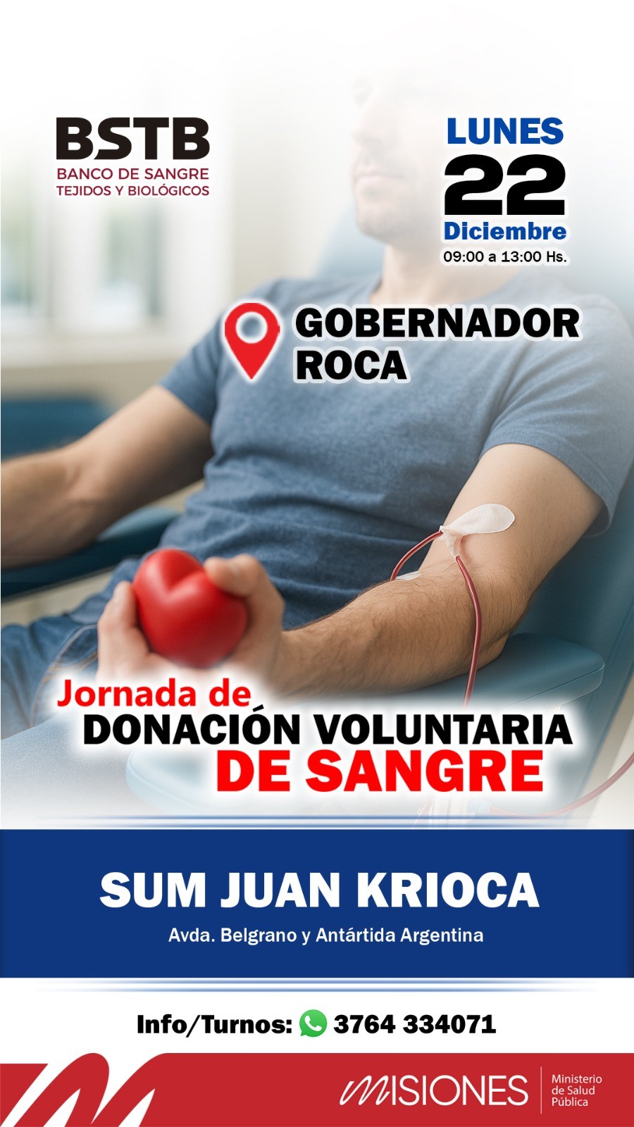 Para concientizar sobre la importancia de donar sangre y así cubrir las demandas del sistema sanitario provincial el Banco de Sangre, Tejidos y Biológicos de Misiones estará realizando jornadas de donación voluntaria para el mes de diciembre. El propósito del mismo es mantener un stock ideal de reservas de sangre.