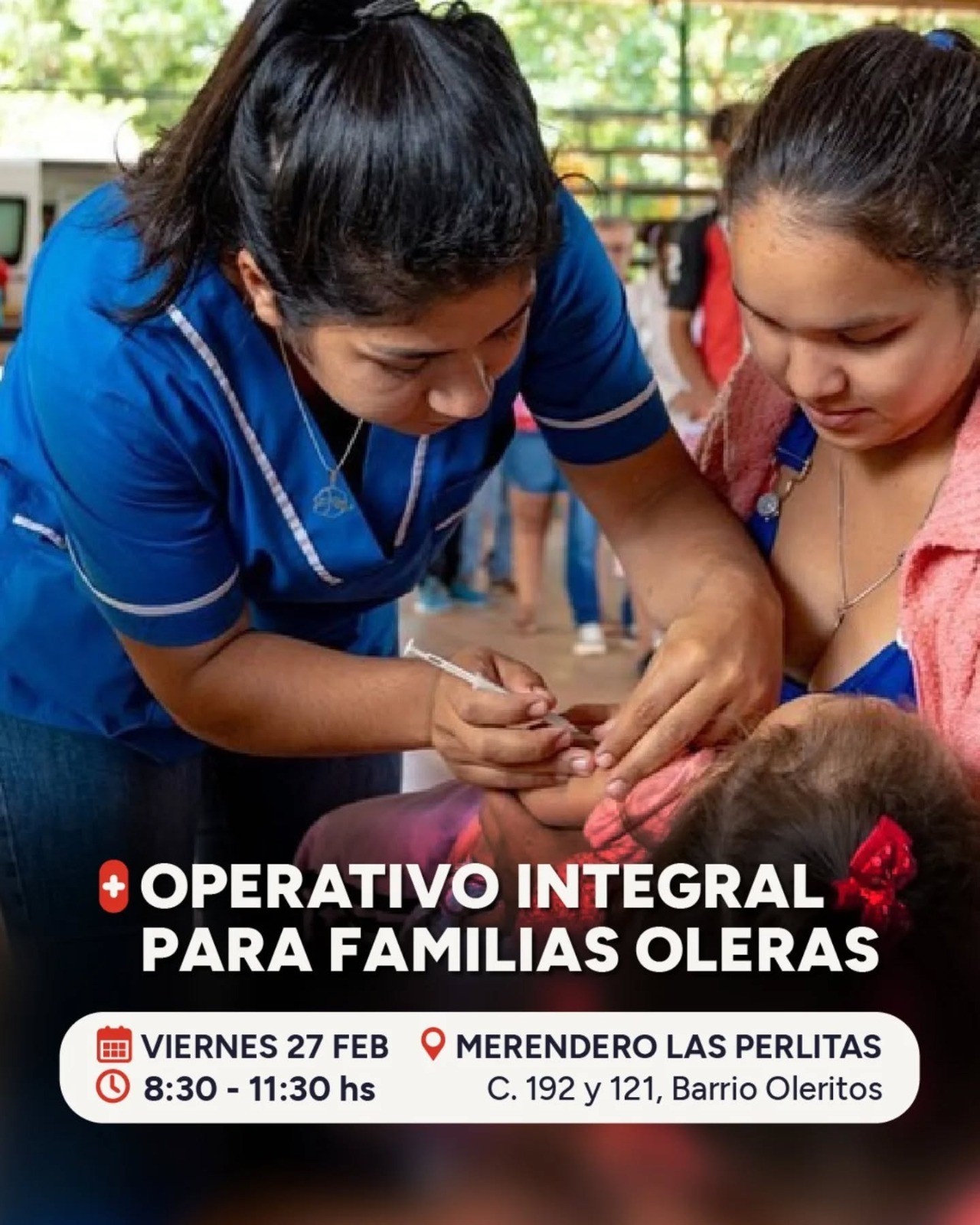 El viernes 27, desde las 8.30 hasta las 11.30 horas, la Subsecretaría de Articulación Interministerial e Integración de Sistemas del Ministerio de Salud Pública va a estar llevando a cabo un operativo integral de salud para las familias oleras, en el merendero “Las Perlitas” del barrio Olerito.