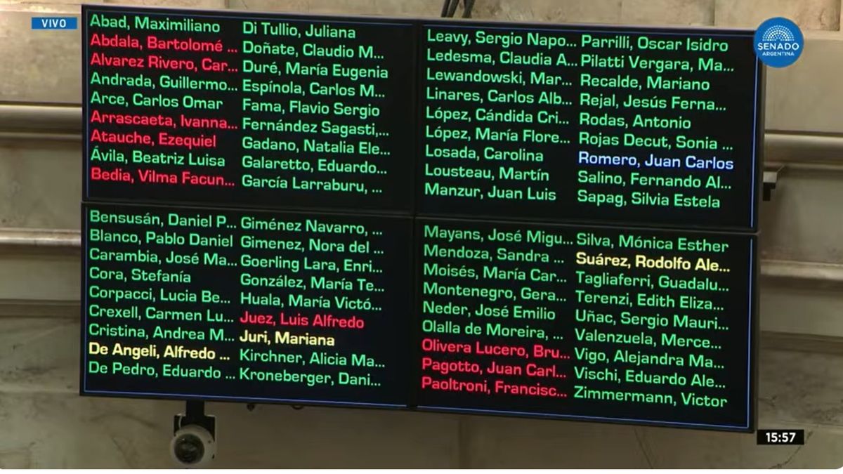 Al igual que la jornada de ayer en Diputados, para poder insistir con la sanción, el Senado necesitaba dos tercios de los presentes. A ese número se llegaba con 46 legisladores, por lo que los 59 votos conseguidos marcan la contundente victoria de la oposición, a la que le sobraron 13 senadores.