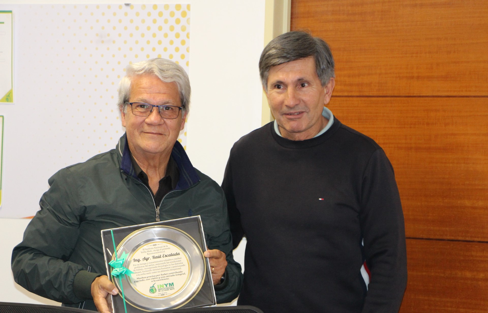 El Directorio del Instituto Nacional de la Yerba Mate (INYM) otorgó este jueves (20 de julio de 2023) un reconocimiento al ingeniero agrónomo Raúl Escalada, por su tiempo y conocimientos volcados a resolver problemas del sector, mejorando las condiciones de trabajo, incorporando tecnología en los distintos eslabones, formando recursos humanos y posicionando a la yerba mate como un alimento excepcional.