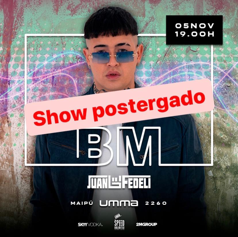 Por razones de fuerza mayor nos vemos obligados a reprogramar el show del artista BM. Show anunciado para este domingo 5 de noviembre.