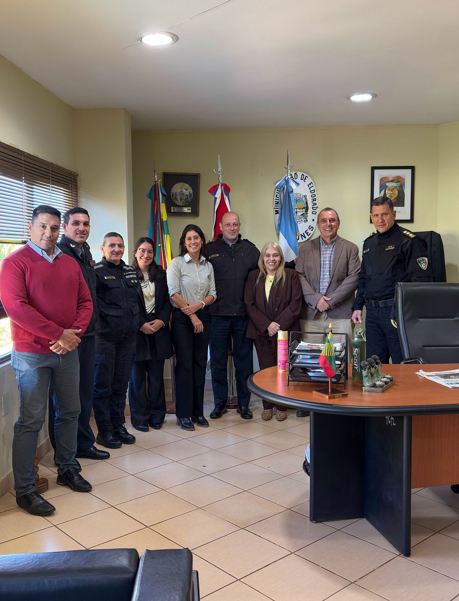 En el encuentro, el Intendente, Dr. Rodrigo Durán, recibió al Comisario General Luis María D’Achary, Director de Verificación de Automotores de la Policía de Misiones; al jefe de la Unidad Regional III, Comisario General Daniel Orlando Molina;la Jueza de Faltas, Dra. Nora Ortiz y a la Dra Vanesa Nielsen, Secretaria del Juzgado de Faltas.