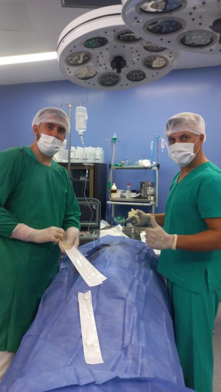 El procedimiento fue llevado a cabo por el equipo interdisciplinario compuesto por los especialistas en cirugía Dr. Leonel Hutwer y Dr. Matías Espíndola, anestesióloga Dra. Cintya González y el especialista en diagnóstico por imágenes Dr. Pablo Arredondo.