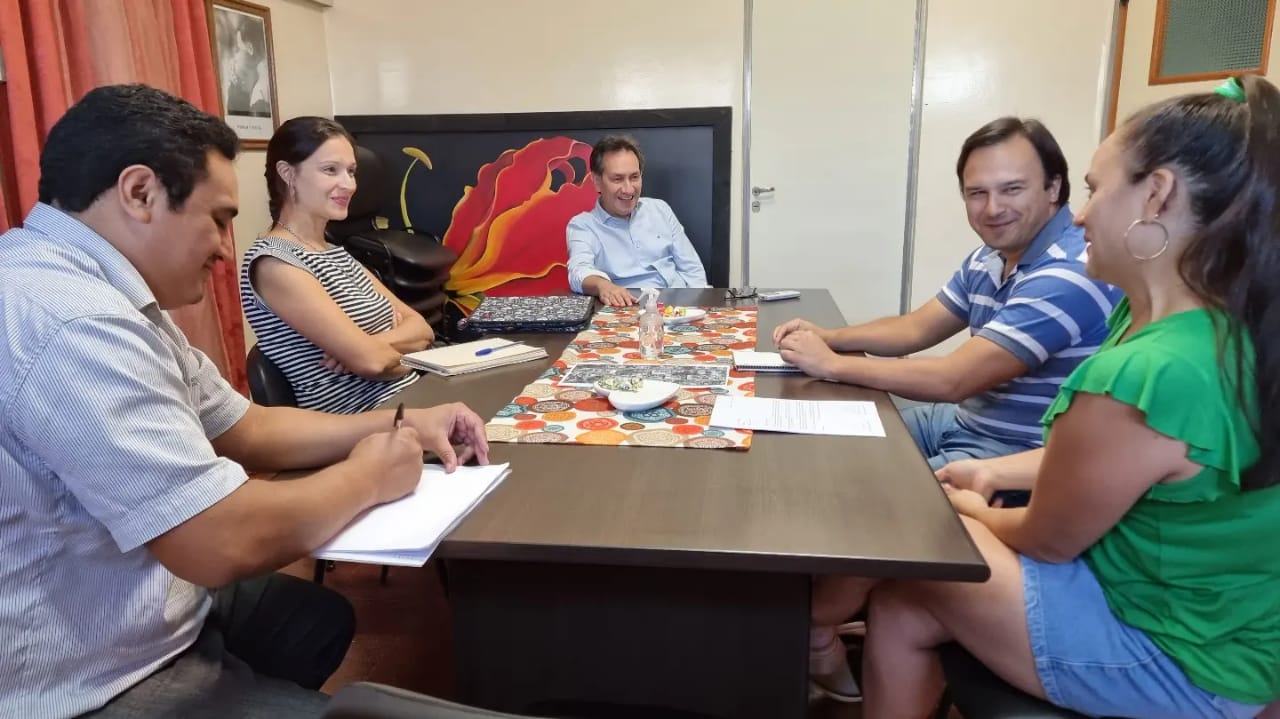 La Municipalidad de Montecarlo mantuvo una reunión con los profesores Cecilia Andrea Rivero y Raúl Báez Ruiz de la escuela de Danzas Martín Miguel de Güemes para preparar el Festival Aniversario N°48 del Instituto “El Cimarrón” (Jujuy).