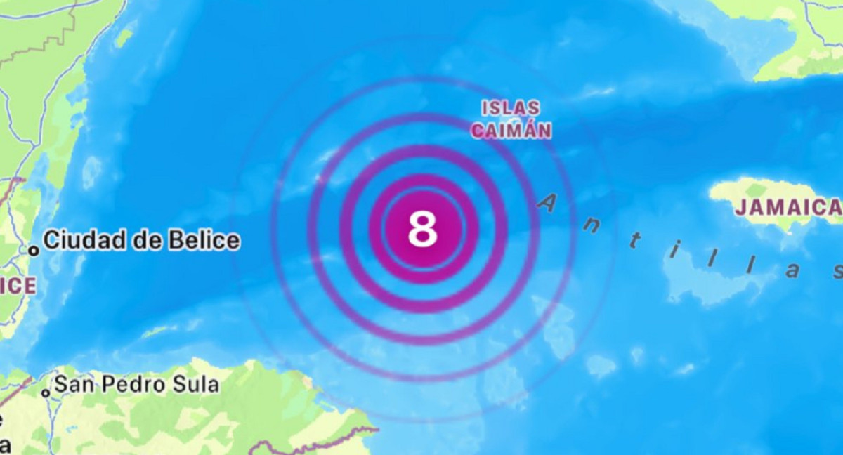«Terremoto notable, información preliminar: M 8.0 – 202 kilómetros al sudoeste de George Town, Islas Caimán», indicó el USGS en un mensaje de X.