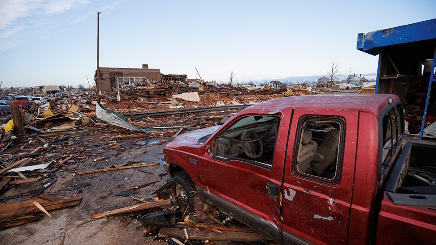 Los meteoros se registraron durante la noche en al menos siete estados, arrasando casas y negocios y arrancando ramas y cortezas de los árboles. Los equipos de emergencia de toda la región contaban los muertos y evaluaban los daños de los tornados que formaron parte de un extenso sistema de tormentas que también provocó incendios forestales en el sur de las Grandes Llanuras y ventiscas en el norte del país.