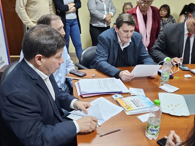 El Ministro de Salud Pública Oscar Alarcón junto a su par de Hacienda Adolfo Safrán se reunieron hoy con representantes de ATE-CTA y UPCN, en la sede la cartera sanitaria, donde acordaron un incremento salarial para agentes de salud y el compromiso de mantener la mesa de diálogo para trabajar en beneficio del personal de salud.