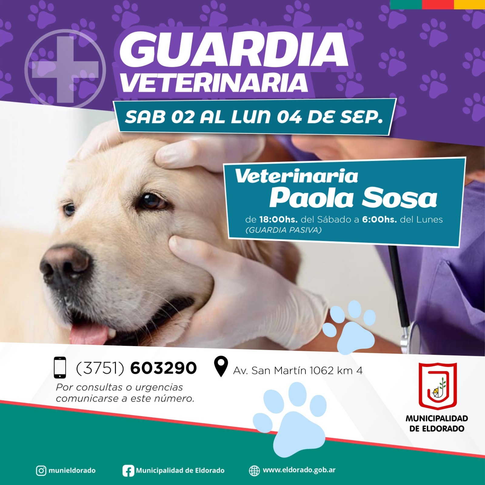 Locales/Salud Veterinaria de turno para el fin de semana by Beto Acosta 2 septiembre, 2023 Este fin de semana se encontrará de turno la Veterinaria Sosa. Se recuerda que al ser guardias pasivas, por consultas o urgencias deben comunicarse al 3751- 603290. Share this Facebook Messenger Twitter Pinterest Linkedin Whatsapp Reddit Email Beto Acosta