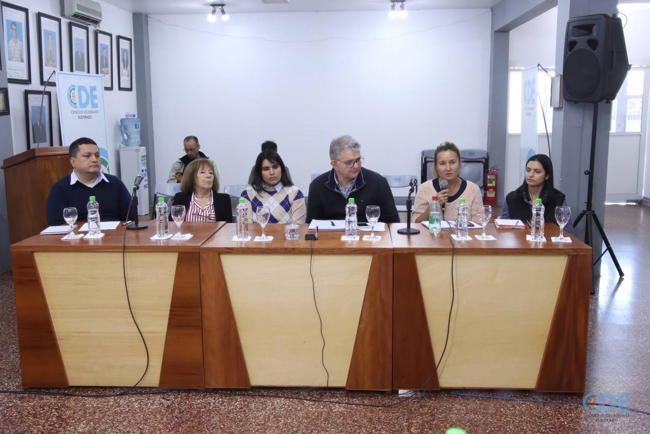 En la mañana de este martes, 29 de agosto, en el Recinto del Concejo Deliberante de Eldorado (CDE), se llevó a cabo una reunión con la presencia de los Concejales; Tec. Bernardino Bobadilla, Tec. Águeda Saenger, Dr. Sebastián Tiozzo; Asesor Legal del DEM, Dr. Germán Chemes y la presidente del Legislativo, Dra. Lorena Cardozo. El encuentro contó con la participación del Director de Asuntos Jurídicos, Dr. Carlos Kozik, en representación del Departamento Ejecutivo Municipal (DEM), y del Prof. Dario Fonseca, integrante del SIPTED.